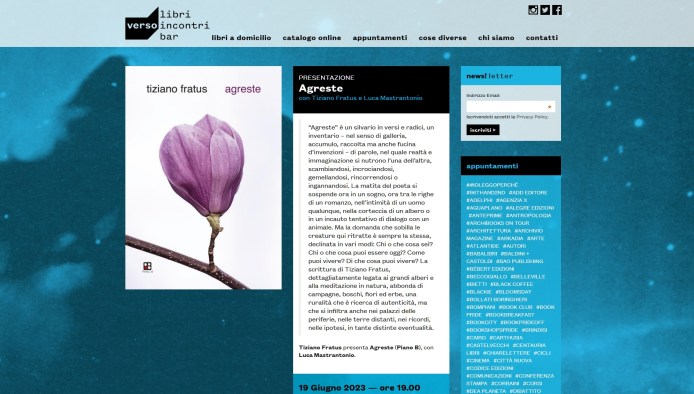 Tiziano Fratus presenta la nuova raccolta di poesie, Agreste, pubblicata da Piano B; l’autore dialoga col giornalista Luca Mastrantonio.