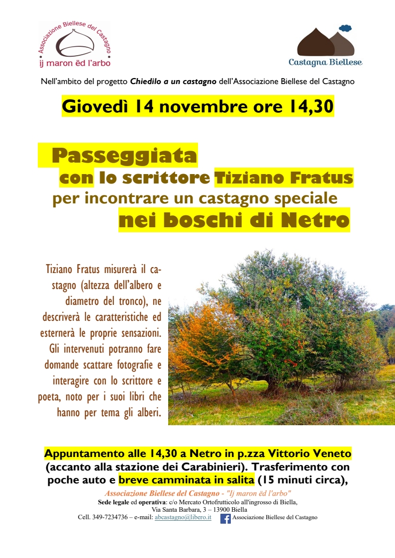 Giovedì 14 novembre 2024, Adottiamo un castagno monumentale