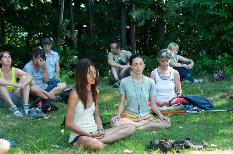Fratus sewed a sort of definition : Silvo-Eco buddhism – s. m. [from lat. selva, wood, from greek oikos, home, land, environment] – Practice of meditation in the woods, inspired by buddhist patriarches’ teachings and trainings; it considers exercises of seated meditation (zazen) and walking meditation, reading of classics and writing poems. It is preferably to make experience into the wild distant forests in the mountains, or in woods in the countryside, but it is possible also in arboretum and private or public city gardens.