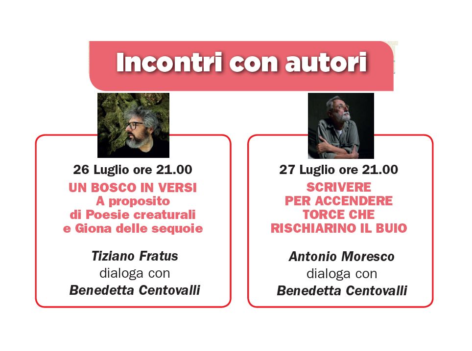 «L’edizione 2019 di Ama Festival, il 6 e 7 luglio, è dedicata agli alberi, maestri naturali, dai quali impariamo l’incredibile arte di vivere nel vento, con le radici che affondano nel buio e i rami inondati di luce. […] Sabato 6 luglio, alle ore 22.00, ci sarà l’incontro con lo scrittore Tiziano Fratus. Dopo aver attraversato le foreste della California e delle Alpi, per “ricercare la voce autentica della natura”, presenterà insieme a Giuseppe Frangi, giornalista di “Vita non profit”, il suo ultimo libro Giona delle sequoie (Bompiani)» Prima Pagina