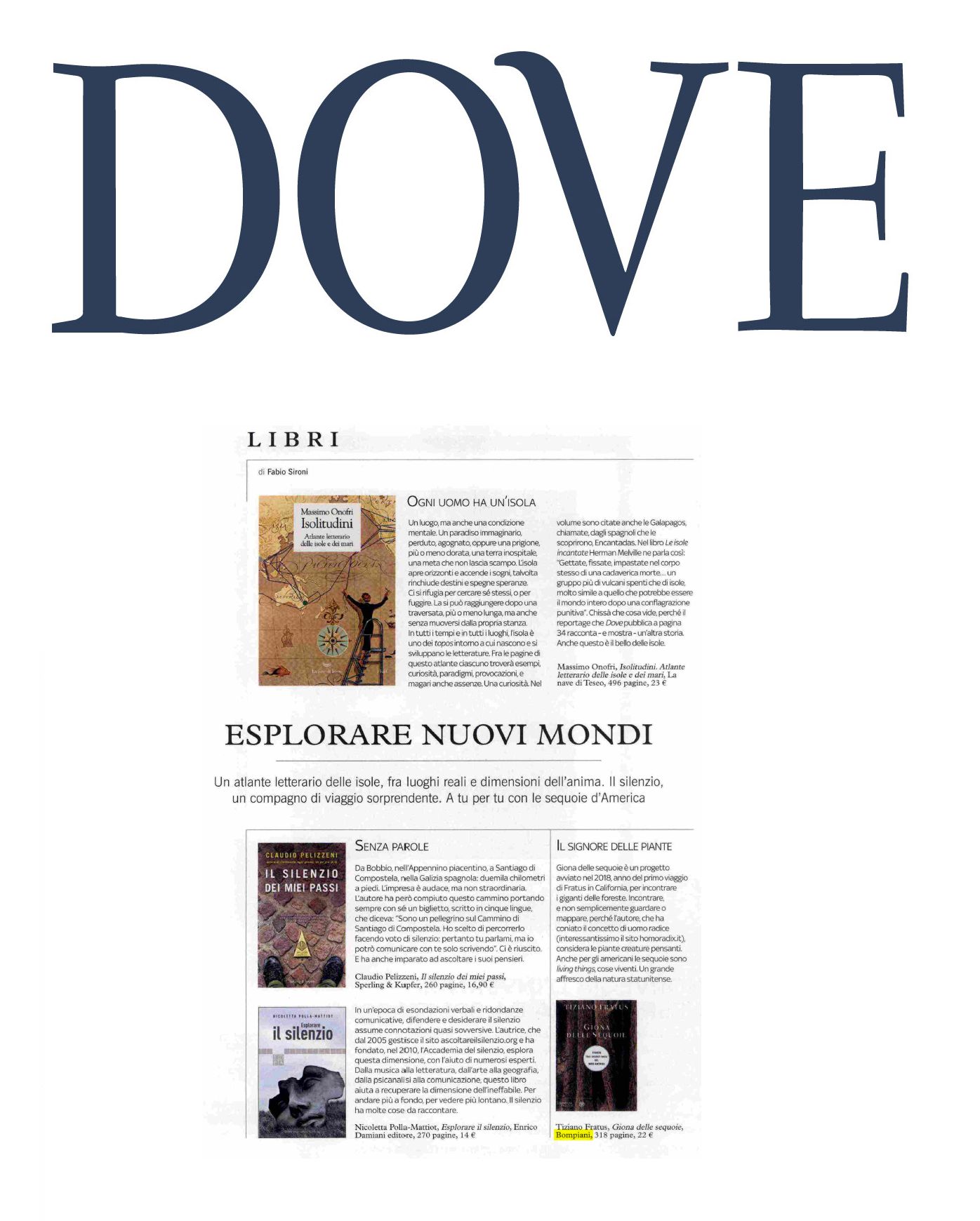 >>> Giona delle sequoie nella pagina Libri del magazine Dove