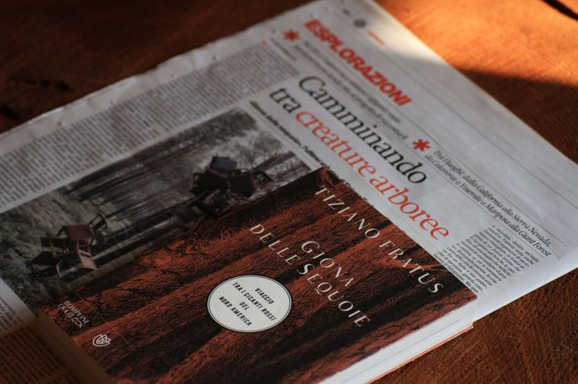 «In contemplazione delle sequoie – “Nemmeno le ciminiere delle fabbriche e le torri più alte costruite al tempo potevano competere con queste vertigini puntellate al cielo”, così Tiziano Fratus immagina il “terrificante stupirsi” di chi, “nel secondo Ottocento”, si addentrava nelle foreste di sequoie, nell’Ovest degli Stati Uniti. Fratus evoca “il vibrante rimescolio di superstizioni” e poi, a sua volta, si immerge in una natura che “non ha alcuna pietà dell’uomo” e “non lo contempla”. Nessun albero come la sequoia induce questo genere di riflessioni. Il libro di Fratus appena uscito si intitola Giona delle sequoie […] L’autore torna su una materia cara, dopo aver pubblicato titoli come Manuale del perfetto cercatore d’alberi, Ogni albero è un poeta, L’Italia è un bosco, Il libro delle foreste scolpite e Il bosco è un mondo» La Lettura – Corriere della Sera