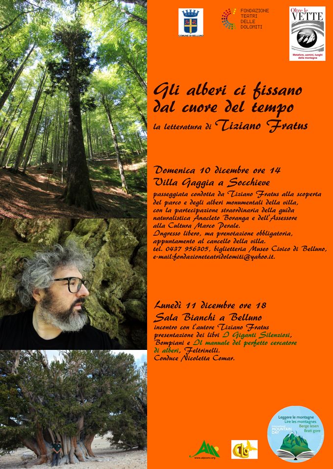 Lunedì 11 ore 18.00 – Sala Bianchi, incontro con Tiziano Fratus e presentazione dei volumi I giganti silenziosi (Bompiani) e Manuale del perfetto cercatore d’alberi (Feltrinelli), modera Nicoletta Comar