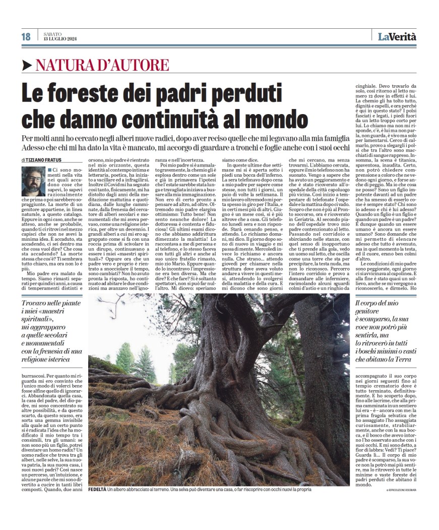 Tiziano Fratus sta componendo una serie di articoli alimentati dal senso di smarrimento che la recente scomparsa di suo padre, a inizio estate, ha iniziato ad affienare. Non sono certo pezzi che si pongono l’obiettivo di essere innovativi o di toccare tutti i temi connessi; semplicemente nascono all’interno di un percorso nel quale le radici sono sempre state fondamentali, come certifica lo stesso concetto guida di Homo Radix, partorito molte estati orsono tra le sequoie della California. Riflessioni dedicate dunque alla memoria di suo padre, ma non soltanto: a ogni forma di fragilità in ambito familiare e affettivo.