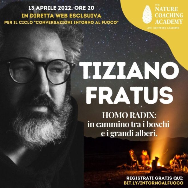 Inoltrandosi nelle foreste californiane e nei boschi dell’arco alpino Tiziano Fratus ha trovato casa. In un’età di confusione, nella quale la famiglia naturale era svanita e i punti cardinali della vita adulta faticavano a mostrarsi, si è tuffato nella dimensione selvatica del paesaggio dove ha forgiato termini quali Homo radix, dendrosofia e Silva itinerans; ha iniziato a coltivare una pratica quotidiana di mediazione in natura che lo ha condotto ad abbracciare il buddismo zen.