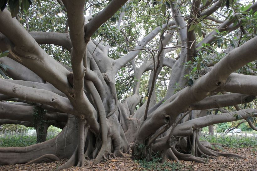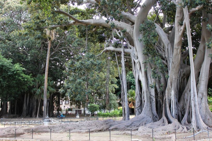 History of Palermo is history of gardens. Travelogues annoted centuries ago the importance of green spaces into the development of the city. And today, in the countemporary town, we could find so many gardens and trees growing among outer and inner courts. Walking in the heart of Palermo we meet a show, a great theatre of architectures, faces and voices, and huge plants. First of all the constellation of Moreton Bay Fig or Ficus macrophylla planted since the first XIX century, sure since the 1840-1845 when the director of the local Botanical Garden planted the first Ficus nervosa, as he bought it in France. An unrestrainable propagation envolved private and public gardens and now we admire a real urban fig grove! I dedicated a book, Palermo è un bosco (Palermo is a Grove), which essays migrated in L’Italia è un bosco (Italy is a Forest), L’Italia è un giardino (Italy is a Garden) and I giganti silen