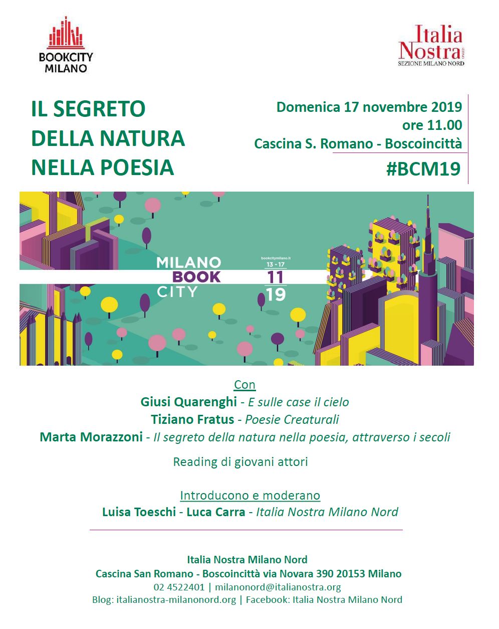 Tre appuntamenti e reading di Tiziano Fratus dove fioriranno alcuni boschi miniati: a Roma, il prossimo 4 novembre, in occasione della partecipazione al Festival Europeo di Poesia Ambientale: la mattina, dalle 10 alle 12, incontro con gli studenti del Liceo Scientifico Francesco D’Assisi, introduce la giornalista Francesca Gentile; il pomeriggio, alle 16, incontro coi lettori alla libreria L’altracittà (via Pavia 106), con la partecipazione di Silvia Dionisi e Valentina Gentile. Un altro appuntamento avrà luogo la Giornata Nazionale dell’Albero, il 21 novembre, presso la Biblioteca degli Alberi di Milano, in occasione del festival Bookcity.