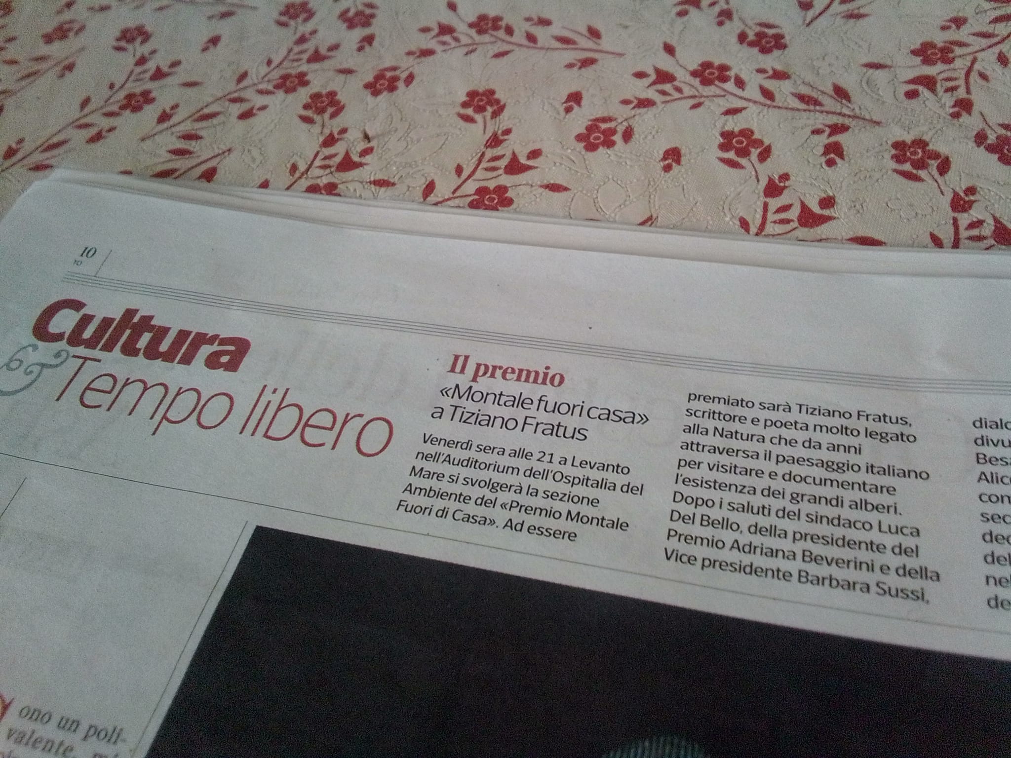 >> Premio Montale a Tiziano Fratus, sito del Premio >>> Corriere della Sera, redazione di Torino >>> Levante News >>> Liguria24.it