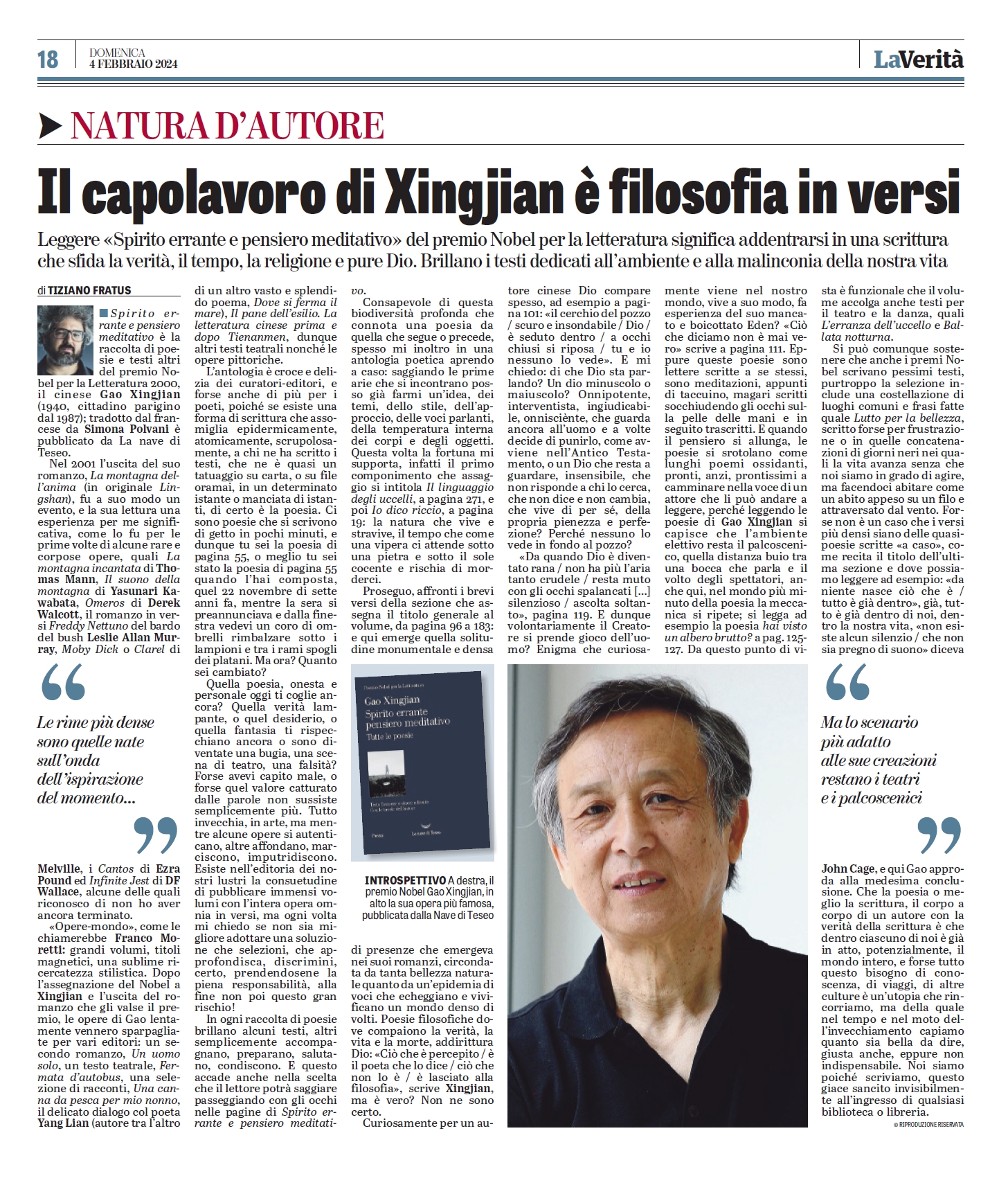 Il capolavoro di Xingjan è filosofia in versi – Soggetti: l’opera del premio nobel Gao Xingjian e la sua raccolta di poesie e testi, Spirito errante pensiero meditativo (La nave di Teseo) – Leggi l’articolo