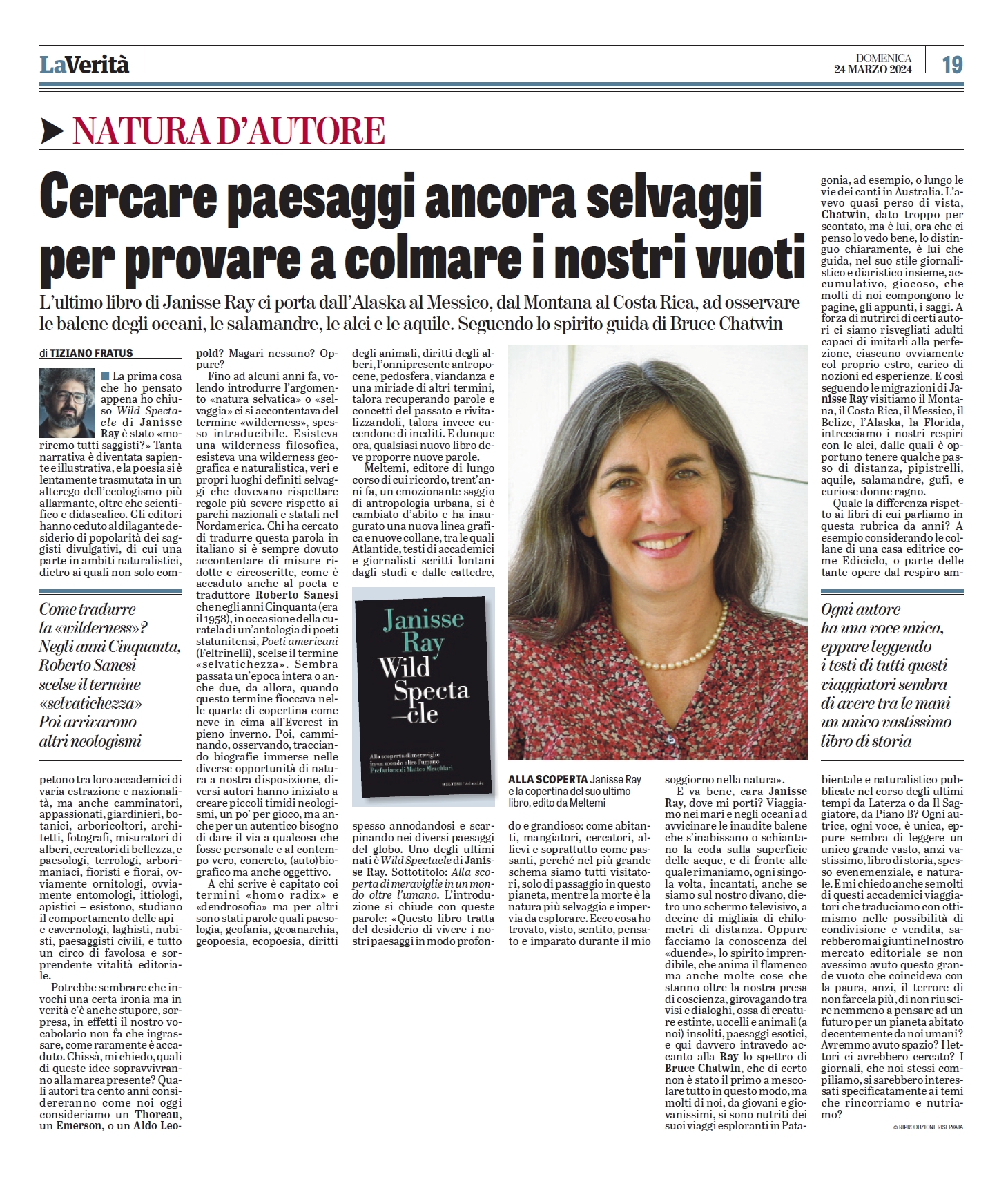 Cercare paesaggi ancor selvaggi per provare a colmare i nostri vuoti – Soggetti: Wild Spectacle di Janisse Ray (Meltemi) – Leggi l’articolo
