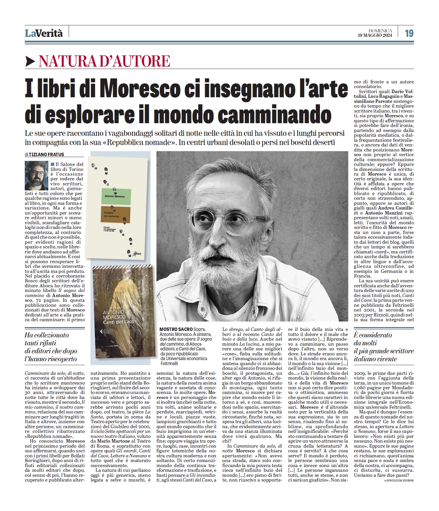 I libri di Moresco ci insegnano l’arte di esplorare il mondo camminando – Soggetti: la scrittura e il cammino di Antonio Moresco, Il sogno del cammino, Aboca, Feltrinelli, canti del Caos – Leggi l’articolo