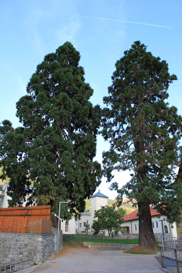 Malles Venosta, due sequoie nei giardini di fronte alla Musikshuele